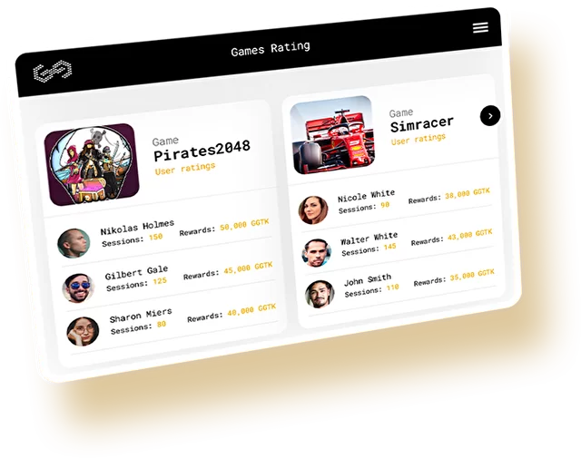 Users earn rewards by playing the games (cryptocurrency, tokenized in-game items (racing cars / weapons), soccer player cards, etc.).